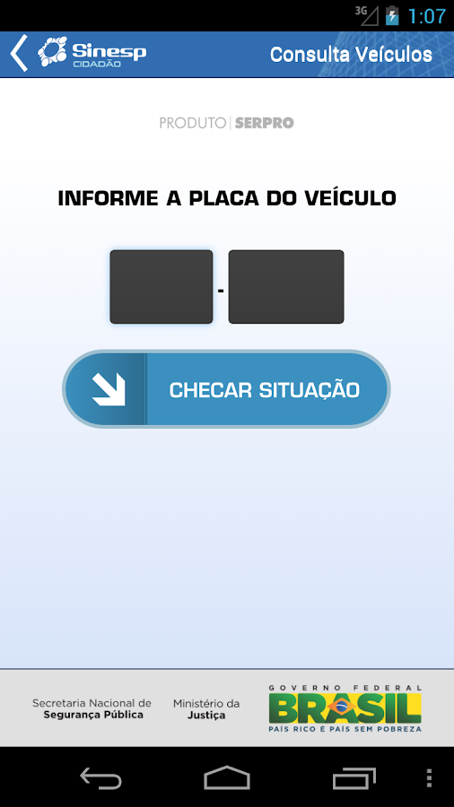 Após instalar o aplicativo, basta digitar a placa para saber a situação do veículo. Em caso afirmativo para o registro de furto ou roubo, aparecerá a informação destacada em vermelho.